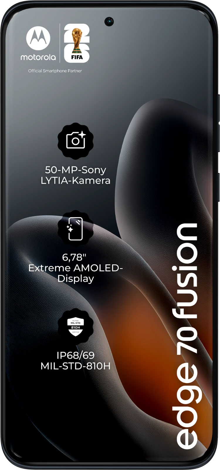 Das motorola edge 70 fusion hebt die wichtigsten Dinge auf ein ganz neues Level. Das makellose Quad-Curved-Design schafft einen eleganten, raffinierten Look und eine natürlich luxuriöse Haptik. Und trotz seines flachen, eleganten Designs ist es vollgepackt mit Funktionen. Kameras auf Profi-Niveau für jede Aufnahme, angefangen beim Sony LYTIA 710-Sensor. Ein intelligenterer Assistent in der Tasche, der alltägliche Aufgaben leichter macht. Und eine lange Akkulaufzeit mit blitzschneller TurboPower-Aufladung. Du gehst gerne auf Entdeckungstouren? Mit Widerstandsfähigkeit nach Militärstandard und Unterwasserschutz kannst du sorglos losziehen. Und all das plus ein 6,78-Zoll-Super-HD-Display mit Pantone Validated-Farben und Hauttönen, unschlagbare Snapdragon-Leistung und jede Menge Speicherplatz für deine Inhalte und Kreationen. Das neue motorola edge 70 fusion ist einfach perfekt.