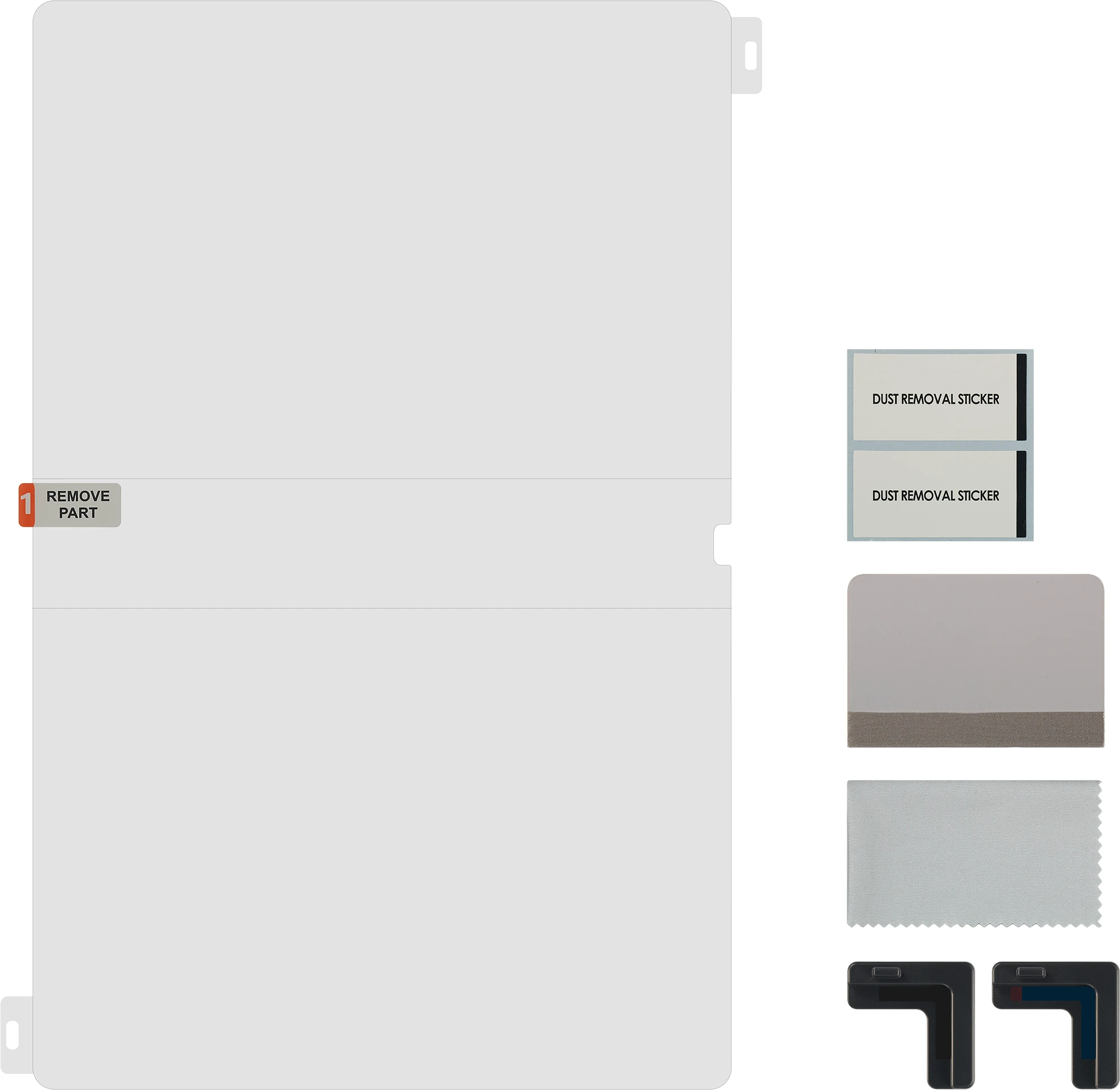 Displayschutz installieren wie ein Profi – Nutze den Applikator, um die Folie genau auf deinem Tablet auszurichten. Und mit dem mitgelieferten Rakel, dem Mikrofasertuch und dem Staubentferner Sticker kannst du ganz leicht eingeschlossene Luftblasen oder Staub von deinem Display entfernen.